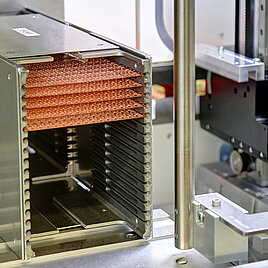 The AMS-X has newly developed plate presses. An extremely compact and rigid construction. To obtain a bleed free end product, each press has 4 clamp modules that ensure a high and even clamp force all around the product.